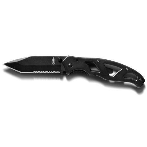 Professzionális harcászati zsebkés fekete borítással és tanto pengével, valamint a Paraframe késekre jellemző nyitott nyélszerkezettel, ami amellett, hogy csökkenti a kés súlyát, könnyen tisztítható
