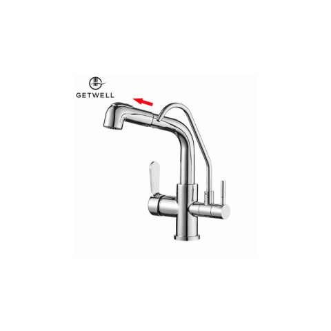 1 kép    GetWell Dipper, 3 utas, Kihúzható Zuhanyfejes Konyhai Csap Vízszűrőkhöz Króm színben