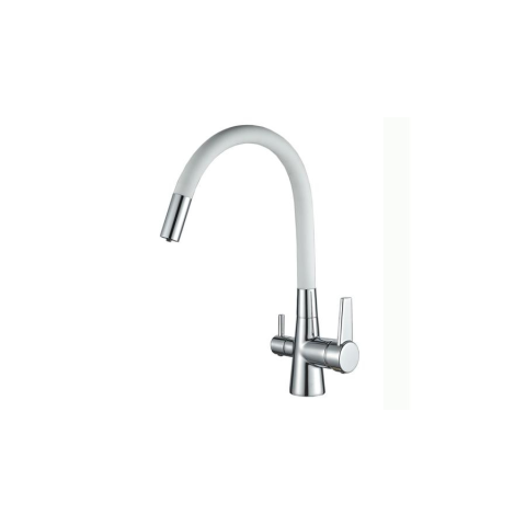 1 kép GetWell Gadwall, két karos, 3 utas, rugalmas nyakú, Konyhai csap víztisztítókhoz Fehér színben