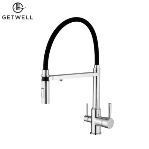 1 kép    GetWell Goose, két karos, 3 utas, kihúzható zuhanyfejes Konyhai Csap Víztisztítókhoz króm színben