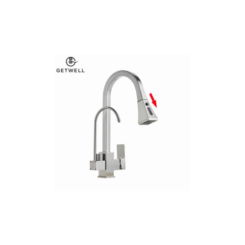 1 kép GetWell Jabiru, 3 utas, Kihúzható Zuhanyfejes Konyhai Csap Víztisztítókhoz Nikkel színben