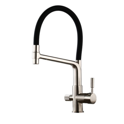 1 kép    GetWell Pelikan 2 karos, 3 utas, kihúzható zuhanyfejes Konyhai Csap Víztisztítókhoz Nikkel színben