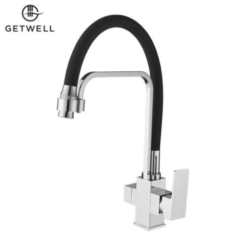 1 kép GetWell Pelikan-R, 3 utas, kihúzható zuhanyfejes Konyhai Csap Víztisztítókhoz Króm-Fekete színben