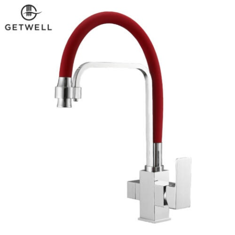 1 kép GetWell Pelikan-R, 3 utas, kihúzható zuhanyfejes Konyhai Csap Víztisztítókhoz Piros színben