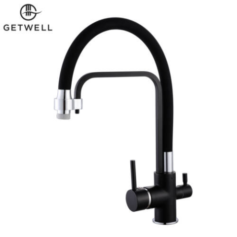 1 kép GetWell Pelikan-RS, 3 utas, kihúzható zuhanyfejes Konyhai Csap Víztisztítókhoz Fekete színben