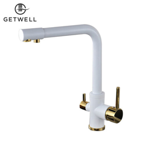 1 kép GetWell Simple 2 karos, 3 utas Konyhai Csap Víztisztítókhoz Fehér-Arany színben