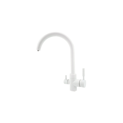 1 kép    GetWell Sinuosity, két karos, 3 utas Konyhai Csap Víztisztítókhoz Fehér színben