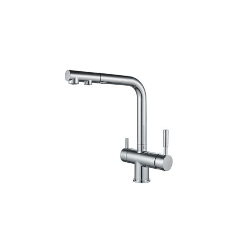 SpoonBill 3 utas konyhai csap kihúzható zuhanyfejjel melyen egyszerre elérhető a konyhai mosogatáshoz használt vízsugár és a szűrt víz kifolyója . A kihúzható, víztakarékos zuhanyfejnek köszönhetően a csap használata egyszerű. A szűrt víz biztonságosan, a szennyezők visszajutása nélkül, külön kifolyón keresztül érhető el. A robusztus kialakításnak köszönhetően a csap nem csak konyhája dísze lehet hosszú évekig, de a kialakítása által biztosít