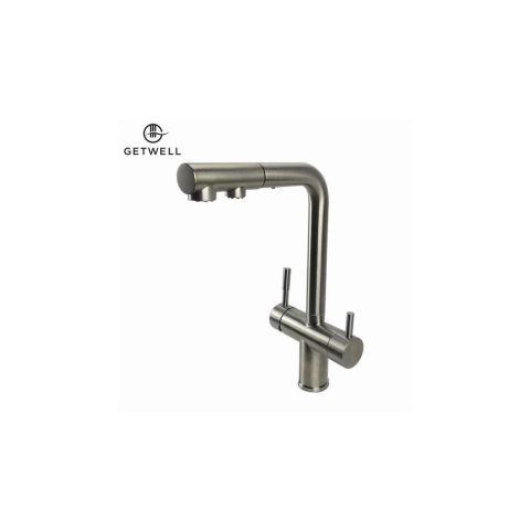 1 kép    GetWell SpoonBill, 3 utas, Kihúzható Zuhanyfejes Konyhai Csap Vízszűrőkhöz Nikkel színben