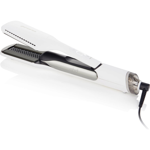 Hajvasaló -, analóg hőmérséklet szabályozás, automatikus kikapcsolás, mozgó simítólapok, működést jelző fény, kijelző nélkül, 2,7 m hosszú kábel, fehér kivitel, flexibilis kábel és mozgó simítólapok, hálózati tápellátás, védőtok a csomag része A ghd Duet Style 2-in-1 Hot Air Styler egyszerre szárítja és formázza a hajat. Az Air-Fusion technológia a fejlett belső aerodinamikát 4 intelligens lemezzel kombinálja. A légrács koncentrált légáramo