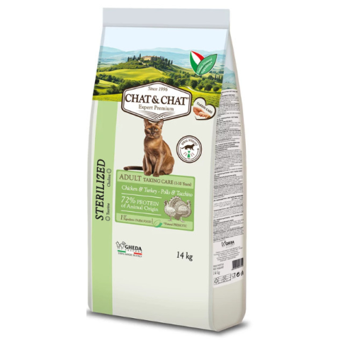 Teljes Gheda Gheda Chat&Chat Sterilized - Chicken & Turkey 14 kg termékleírás