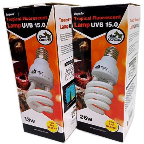 Giangarden Fluorescent Lamp UVB terráriumi kompakt izzó. Látható fényt, UVA és magas UVB sugárzást biztosító, alacsony hőkibocsájtású izzó. A 290-310 nm hullámhosszú UVB sugárzás stimulálja a D3-vitamin szintézist, ami hozzájárul a hatékonyabb kalcium feldolgozáshoz, így terráriumi állataink csontozata és páncélzata egészségesen fejlődhet és meg is őrizheti egészségét. Eközben az UVA sugárzás hozzájárul a jobb közérzethez és emésztéshez, serkenti