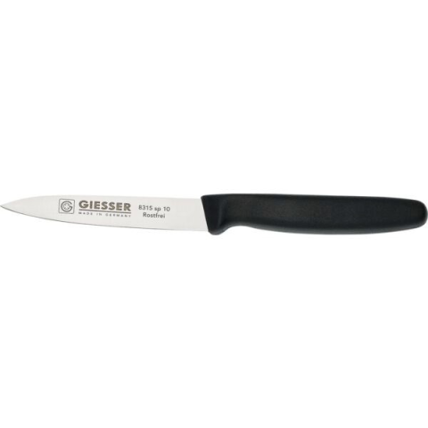 Giesser sima konyhakés 10 cm hosszú rozsdamentes acél pengével és fekete markolattal. Ideális mindennapi használatra a konyhában.