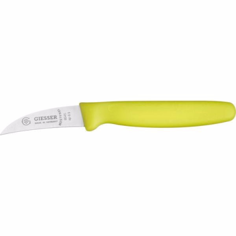 Giesser Messer zöldségkés 6 cm hosszú, sima pengével limezöld színben. Alkalmas gyümölcsök, burgonya és tojások szeletelésére. Króm-molibdén rozsdamentes acélból készült.