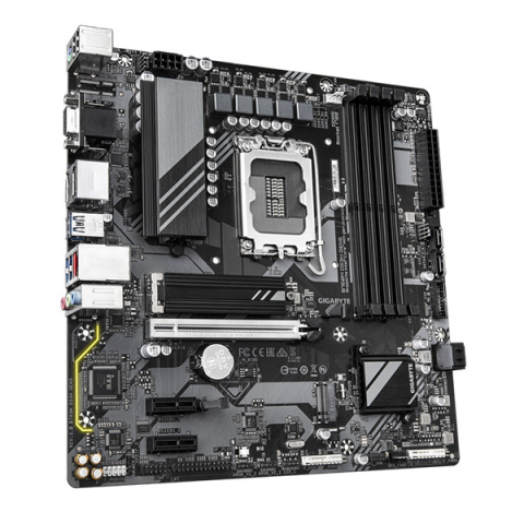 LGA1700, Intel B760, 4xDDR5, Max:4800MHz, Max:128GB, 1xPCIE16, 2xPCIE1, 4xSATA3, RAID, 2xUSB, 3xUSB3.2, 1xUSB3.2C, VGA, HDMI, DisplayPort, PS2:1 db, 7.1, 2.5Gb/s LAN, 2xM.2, Micro-ATX