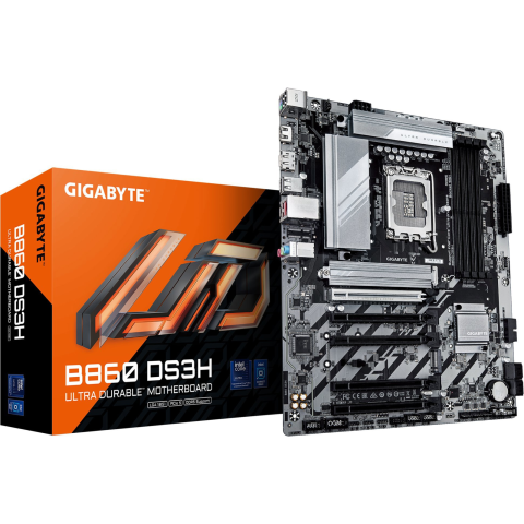 Alaplap - Intel B860, Intel 1851 socket, méret ATX, 4× DDR5, 9066MHz (OC), 5× PCIe x16, 4× SATA III, 2× M.2, RJ-45 (LAN) 2,5Gbps, 1× USB 3.2 Gen 2×2, 1× USB 3.2 Gen 2, 4× USB 2.0, DisplayPort 2.1, HDMI 2.1, 8 csatornás hangkártya A nagyszerű GIGABYTE alaplap Intel B860 chipsetre épül és a CPU fogadására Intel 1851 foglalatot kapott. Természetesen része egy hangkártya is, ami 8.0 csatorna vezérlésére képes. A PC alaplap beszere