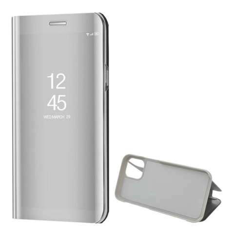1 kép Gigapack Apple iPhone 12 tok álló (aktív Flip, oldalra nyíló, tükrös felület) ezüst