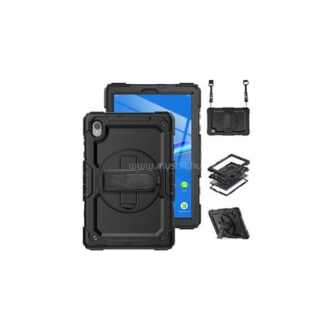 1 kép Gigapack Defender műanyag telefonvédő (ütésállóság, kitámasztó, 360° + kézpánt) FEKETE (GP-129257)