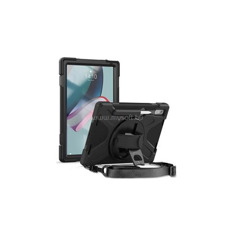 1 kép Gigapack Defender műanyag telefonvédő (ütésállóság, kitámasztó, 360° + kézpánt) FEKETE (GP-138937)