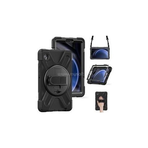 1 kép Gigapack Defender műanyag telefonvédő (ütésállóság, kitámasztó, 360° + kézpánt) FEKETE (GP-150480)