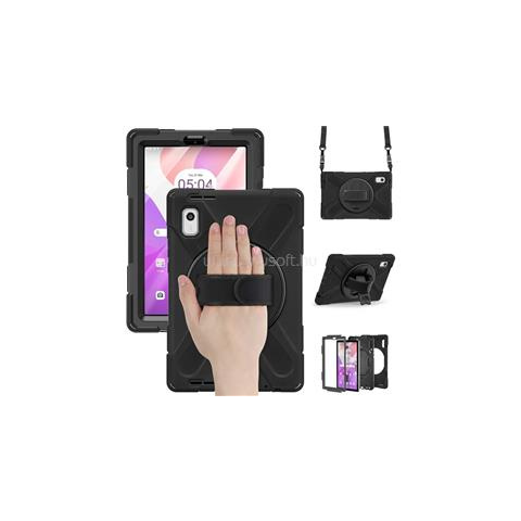 1 kép Gigapack Defender műanyag telefonvédő (ütésállóság, kitámasztó, 360° + kézpánt) FEKETE (GP-152731)