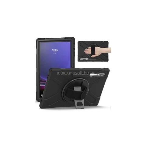 1 kép Gigapack Defender műanyag telefonvédő (ütésállóság, kitámasztó, 360° + kézpánt) FEKETE (GP-152772)