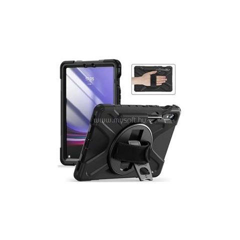 1 kép Gigapack Defender műanyag telefonvédő (ütésállóság, kitámasztó, 360° + kézpánt, vállpánt) FEKETE (GP-152730)
