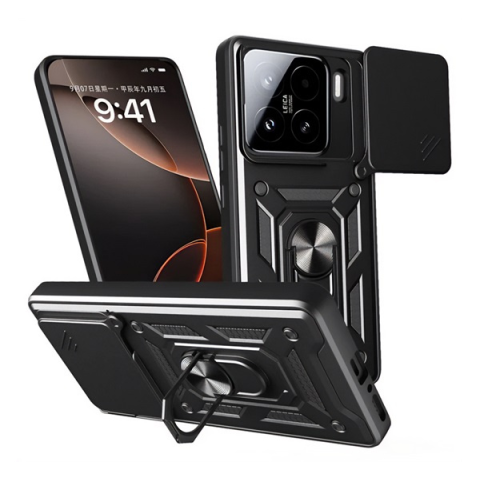 1 kép Gigapack Defender szilikon telefonvédő (ütésállóság, tartógyűrű, kameravédő) FEKETE Xiaomi 15