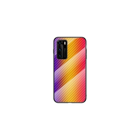 1 kép Gigapack Huawei P40 tok (BUMPER, edzett üveg hátlap, karbon minta, sárga)