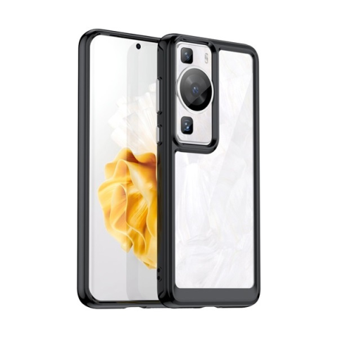 1 kép Gigapack Huawei P60 Pro műanyag telefonvédő (szilikon keret, közepesen ütésálló, átlátszó hátlap) fekete