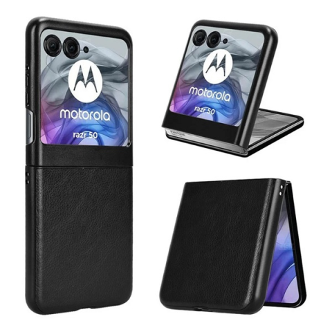 Motorola Razr 50 5G GIGAPACK Műanyag telefonvédő bőr hatású hátlap FEKETE