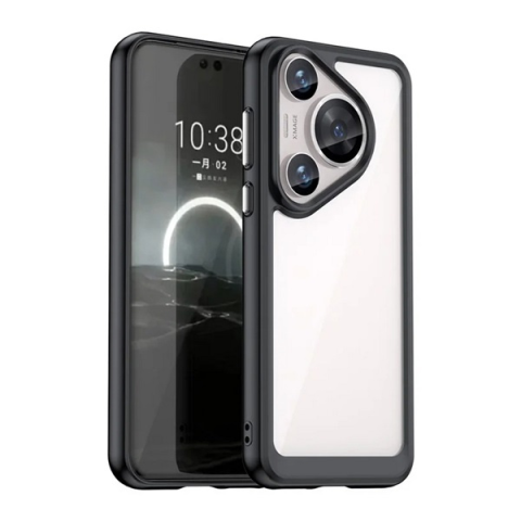1 kép Gigapack Műanyag telefonvédő (szilikon keret, ütésállóság, átlátszó hátlap) FEKETE Huawei Pura 70 Pro