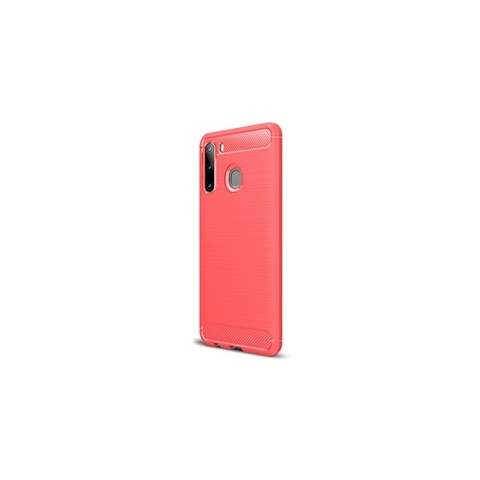 Gigapack Samsung Galaxy A21 Szilikon telefonvédő (légpárnás sarok, szálcsiszolt, karbon minta, piros)