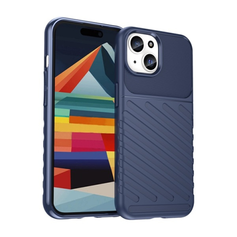 1 kép Gigapack Szilikon telefonvédő (közepesen ütésálló, csíkos, dombor minta) SÖTÉTKÉK Apple iPhone 15