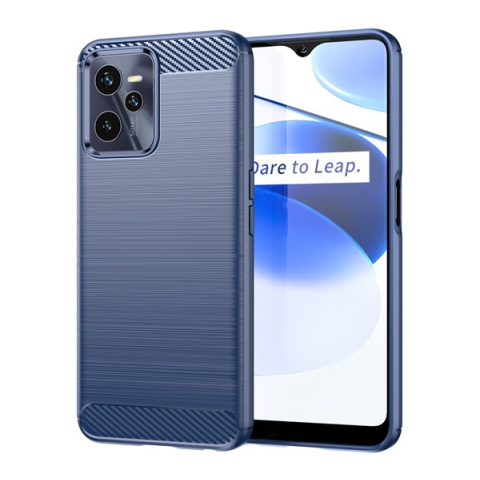 1 kép Gigapack Szilikon telefonvédő (közepesen ütésálló, légpárnás sarok, szálcsiszolt, karbon minta) SÖTÉTKÉK Realme C35