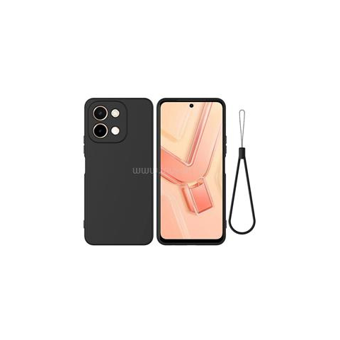 1 kép Gigapack Szilikon telefonvédő (matt, mikrofiber plüss karcolásmentesítő belső, prémium + kézpánt) FEKETE (GP-160963)