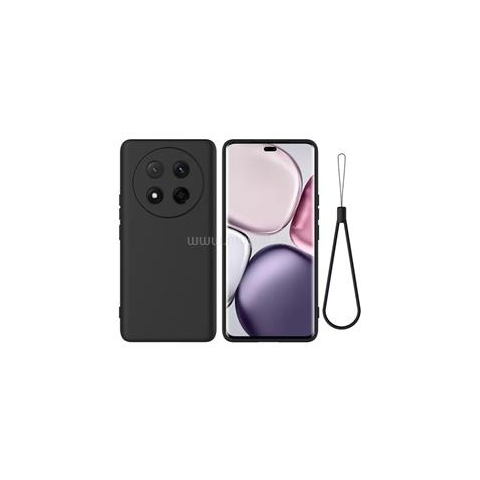 1 kép Gigapack Szilikon telefonvédő (matt, mikrofiber plüss karcolásmentesítő belső, prémium + kézpánt) FEKETE (GP-166703)