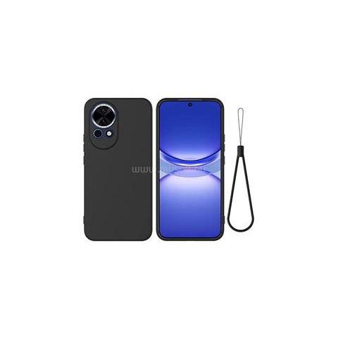 1 kép Gigapack Szilikon telefonvédő (matt, mikrofiber plüss karcolásmentesítő belső, prémium + kézpánt) FEKETE (GP-168196)