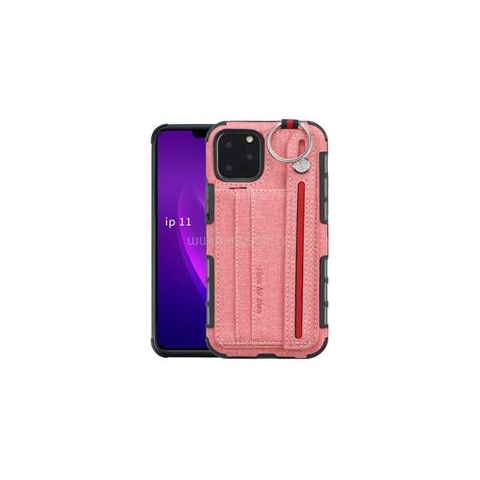 1 kép Gigapack Szilikon telefonvédő (ütésállóság, asztali tartó, kártyazseb, textil hátlap + kézpánt) RÓZSASZÍN (GP-95774)