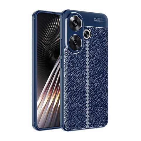 1 kép Gigapack Szilikon telefonvédő (ütésállóság, bőr hatású, varrás minta) SÖTÉTKÉK Xiaomi Poco F6