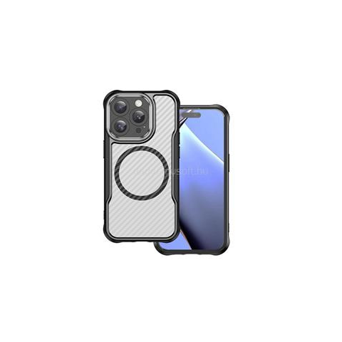 1 kép Gigapack Szilikon telefonvédő (ütésállóság, légpárnás sarok, kameravédő, karbon minta, MagSafe) FEKETE (GP-168559)