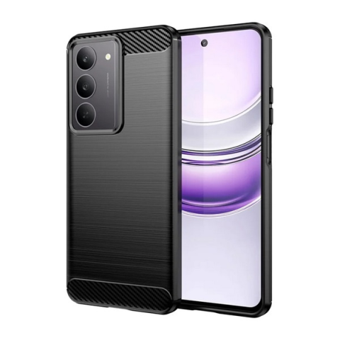 1 kép Gigapack Szilikon telefonvédő (ütésállóság, légpárnás sarok, szálcsiszolt, karbon minta) FEKETE Realme C75 4G