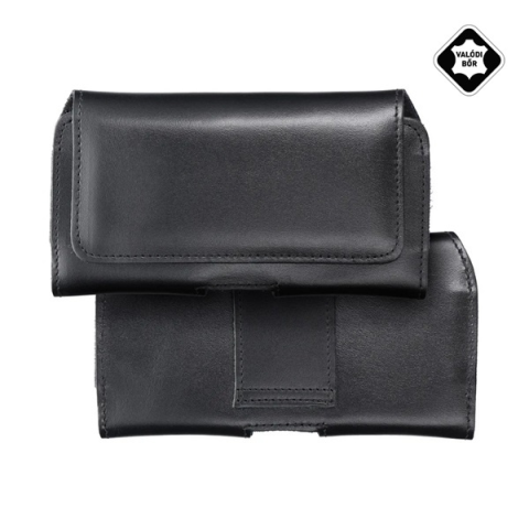 1 kép Gigapack Tok fekvő, valódi bőr (univerzális, övre fűzhető, mágneses, L méret) FEKETE
