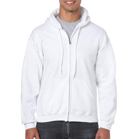 Cipzáras kenguru zsebes kapucnis pulóver, Gildan GI18600, 271.0 g/m2 (White 257 g/m2) 50% pamut / 50% poliészter Air jet fonal = puhább tapintás és bolyhosodás mentes Béleletlen kapucni, színazonos húzózsinórral Kitéphető címkére váltás folyamatban
