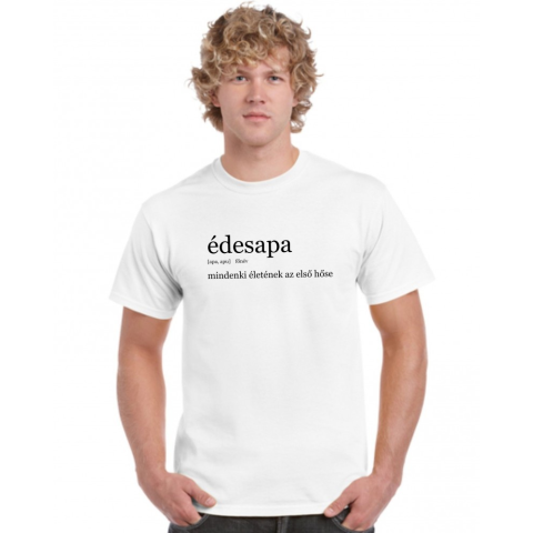 Jellemzői: kereknyakú rövidújjú uniszex póló anyaga 100% pamut 185 g/m2 (175 gr/m2 fehér) S-3XL méretekig választható 10 színben kapható édesapa [apa, apu] főnév mindenki életének az első hőse A Gildan® 1984 óta kínál minőségi hétköznapi ruházatot