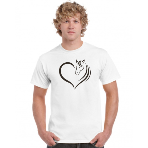 Lovas szív kereknyakú pamut póló 100% pamut, uniszex póló Lovas mintával. körkötött, környakas, rövid ujjú anyaga 100% pamut 185 g/m2 (175 gr/m2 fehér) S-3XL méretekig választható varrás nélküli, duplán tűzött nyakkivágás válltól-vállig pántos kitéphe