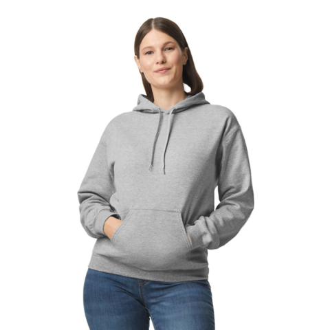Softstyle kapucnis pulóver kenguruzsebbel, Gildan GISF500, 80% gyűrűsfonású pamut, 20% poliészter, 285.0 G/SqM (fehér 278.0 G/SqM) A Softstyle Midweight Fleece kellemesen puha tapintású belsővel és 100% gyűrűs fonású pamutból készült külső felülettel r