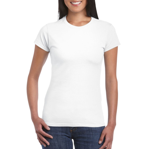 Softstyle testhez álló rövid ujjú női póló, Gildan GIL64000, 153.0 g/m2 (White 144.0 g/m2) 100% gyűrűs fonású pamut Pamut/poliészter keverék egyes színek esetében Testhez álló, oldalvarrott Simább nyomási felület a magas öltéssűrűségnek köszönhetően