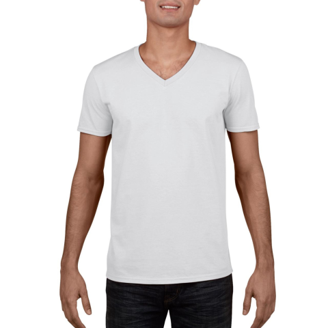 V-nyakú rövid ujjú pamut póló, Gildan GI64V00, 153.0 g/m2 (White 144.0 g/m2) 100% gyűrűs fonású pamut Pamut/poliészter keverék egyes színek esetében Eurofit - keskenyebb szabású váll és ujjak Simább nyomási felület a magas öltéssűrűségnek köszönhető