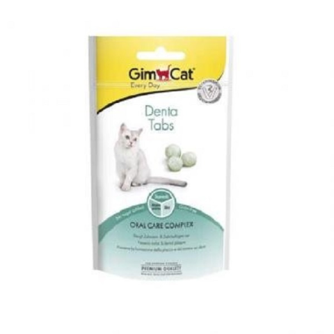 Jellemzők:A GimCat Denta Tabs olyan értékes, koptató hatású cellulóz anyagot tartalmaz, amely megakadályozza a lepedék és a fogkő kialakulását.A fog felszínéről eltávolítja a káros anyagokat.A nátrium-hexafoszfát (kalciumforrás) megakadályozza a fogkőképződést, erősíti a fog szerkezetét.A tengeri moszat megerősíti a fogakat és a menta javítja a leheletet.Gabona- és cukormentes. Összetétel:Tej és tejtermékek, olajok és zsírok, élesztők, algák (szárít